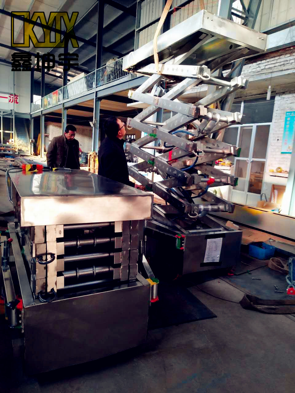 由于客户公司车间里作业环境具有高腐蚀性,所以客户要求自行式升降机必须外包不锈钢,升高后自动行走。全包不锈钢在生产施工中难度很大,鑫坤宇的技术人员突破了像折弯等很多技术性难关,终于生产成功,并且通过了鑫坤宇严苛的质检环节。客户收到货后,经客户方验收,顺利通过,并打来电话表示满意。