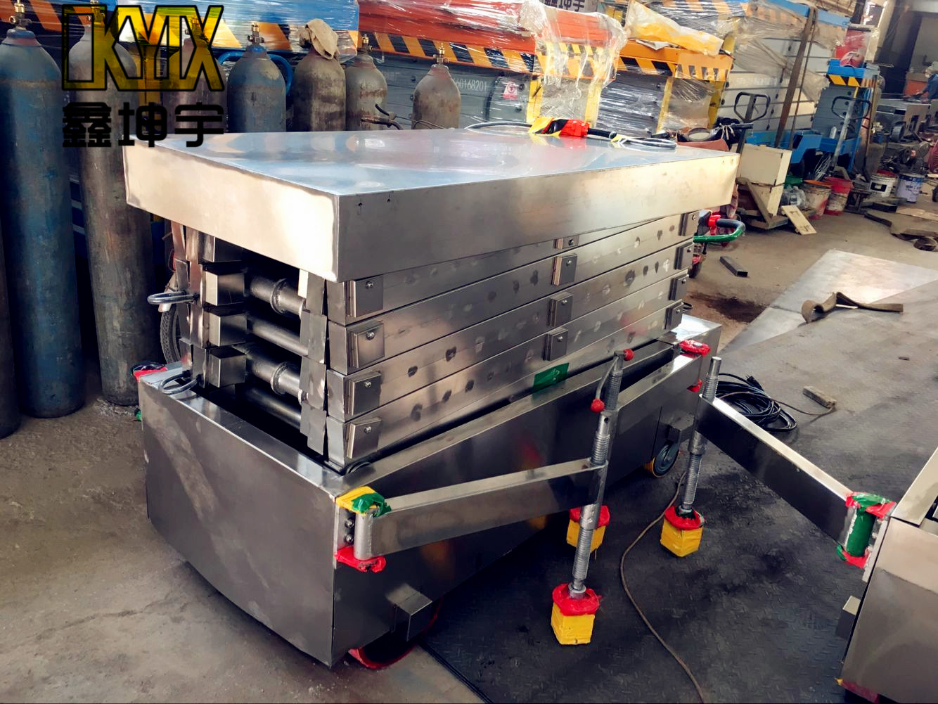 广东某公司车间定制鑫坤宇全包不锈钢自行式升降机